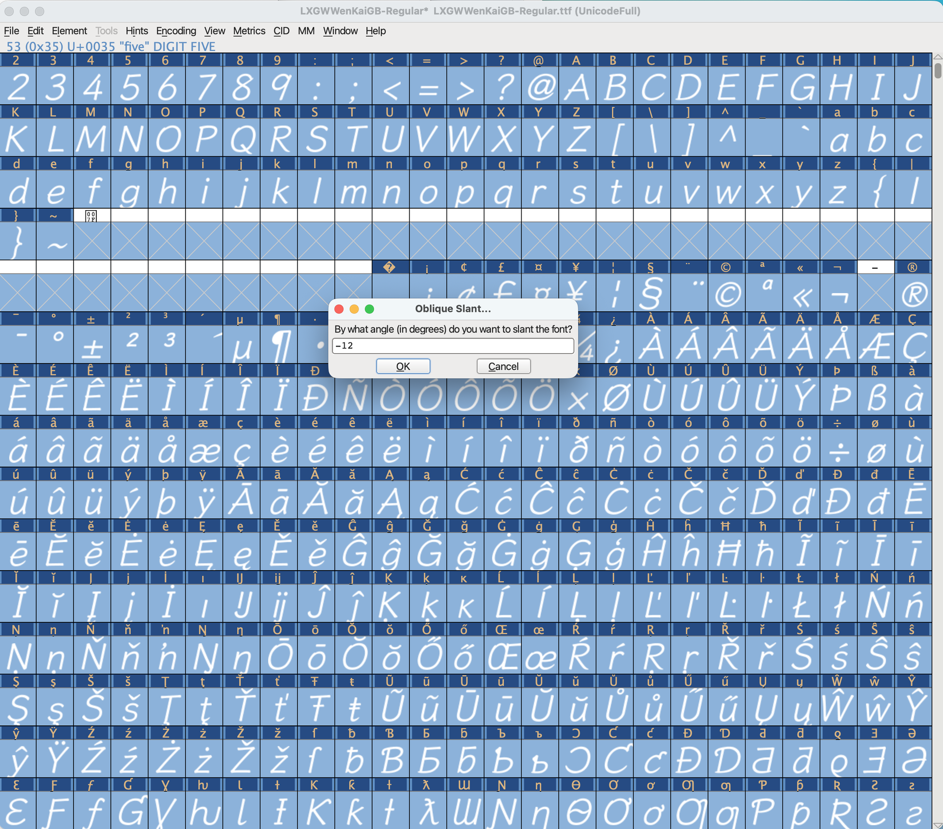 LANG=en_US.UTF-8 open -a FontForge生成Regular字体的斜体文件 Link to this section