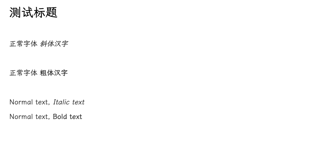 两个中文斜体字体都已经创建好了,可以通过macOS下的Font Book查看字体,记录下字体的PostScript名称在NotePlan配置中使用。