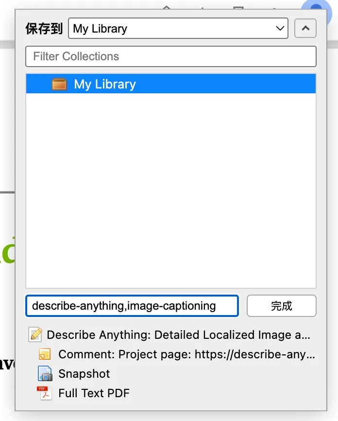 使用浏览器扩展添加新文献时,添加标签的过程非常直观和便捷。只需要在标签输入框中输入标签名称,用逗号分隔多个标签即可。不再需要考虑将文献放入哪个Collection中,