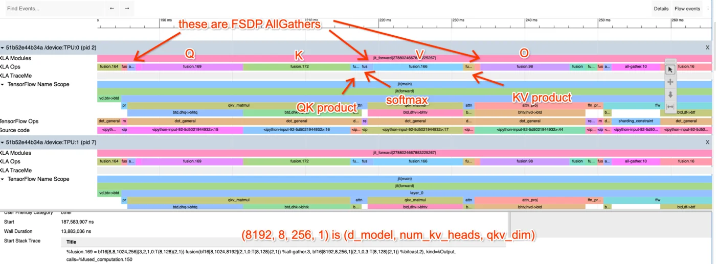 第9章:如何分析TPU代码。实际的LLM从来不像上面的理论那么简单。这里我们解释JAX + XLA堆栈,以及如何使用JAX/TensorBoard分析器来调试和修复实际问题。